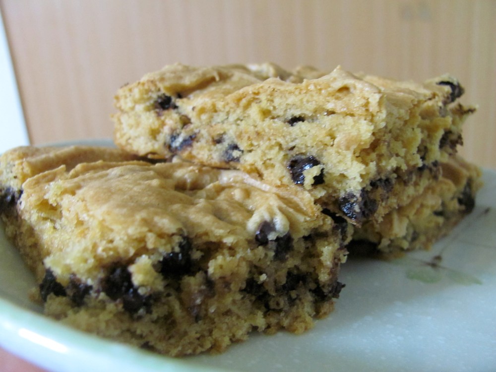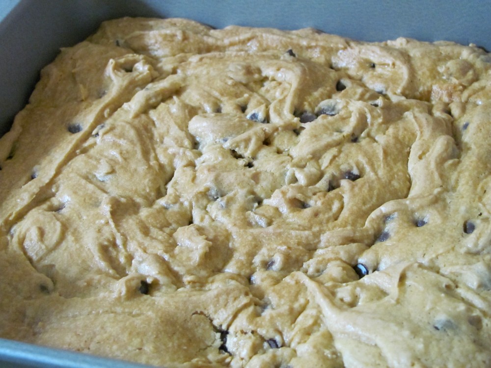 Adapted from “Peanut Butter – Chocolate Chip Brownies,” Cooking Light (June 2000).