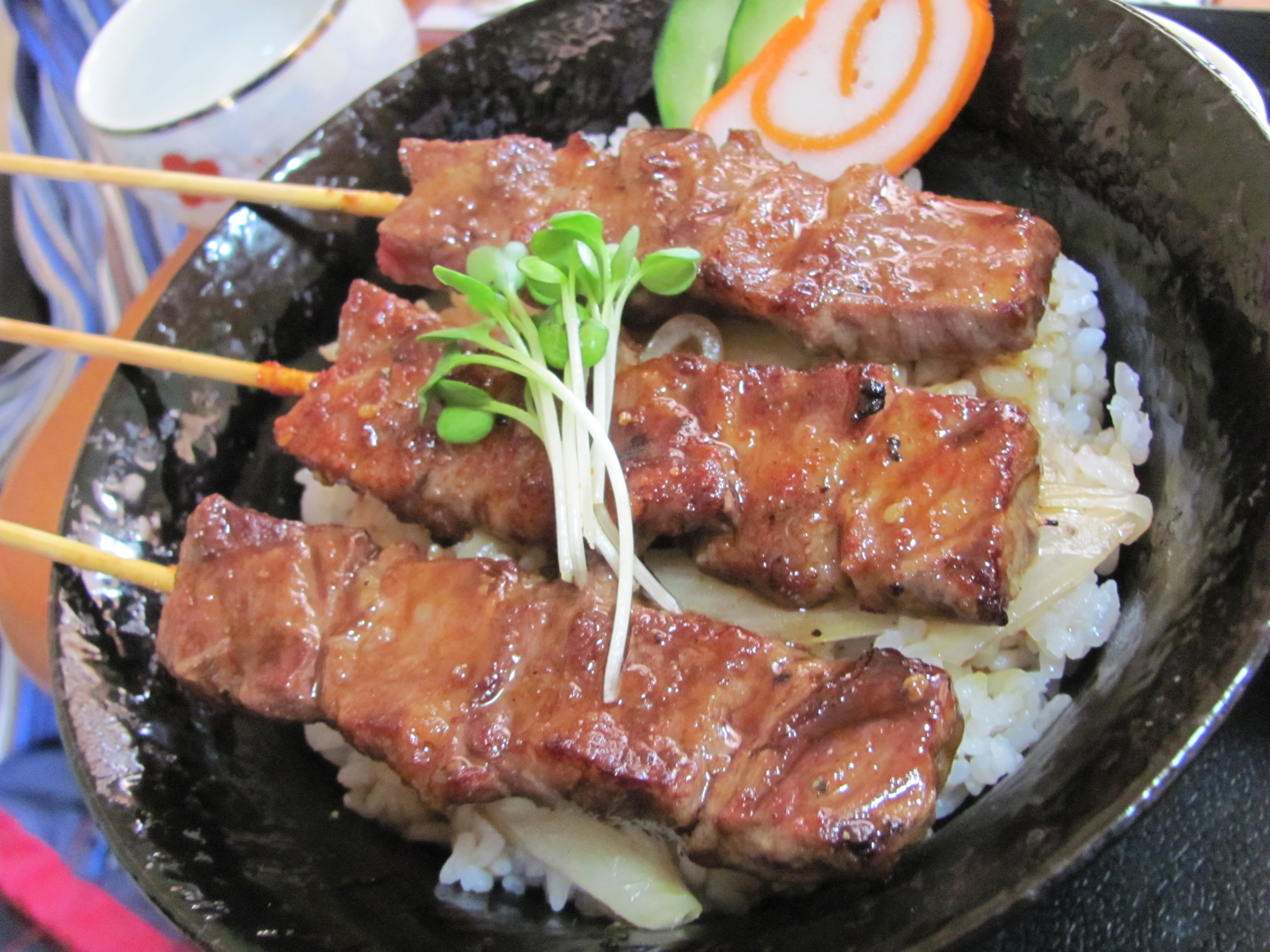 One of the skewers was spicy, and the staff even asked if that were okay, which I thought was very conscientious. Apparently the juices and marinade in this kebab-donburi hybrid drip onto the rice and make it even more delicious.