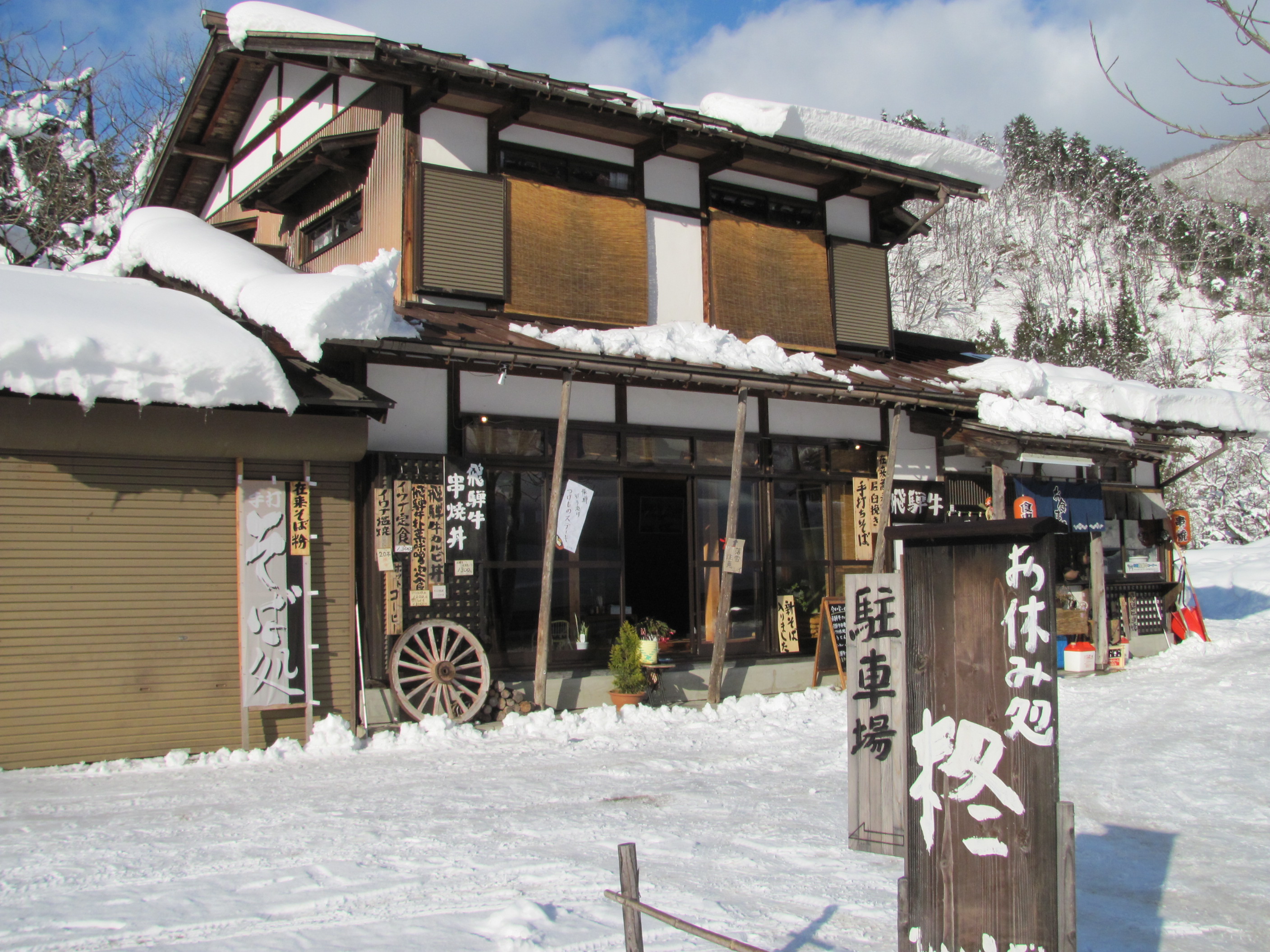 Wow. This looks wonderful. From the architecture and cozy wooden decor, to the regional specialty foods… (Also, I miss snow.) I’ve heard rumor of Hida-gyû – it was good? Had not heard of hôba miso yaki, though. Rikaichan tells me it’s just grilled magnolia leaves. Doesn’t sound very tasty. But, then, if you’re grilling various foods on/with the leaves, that’s a whole different story.