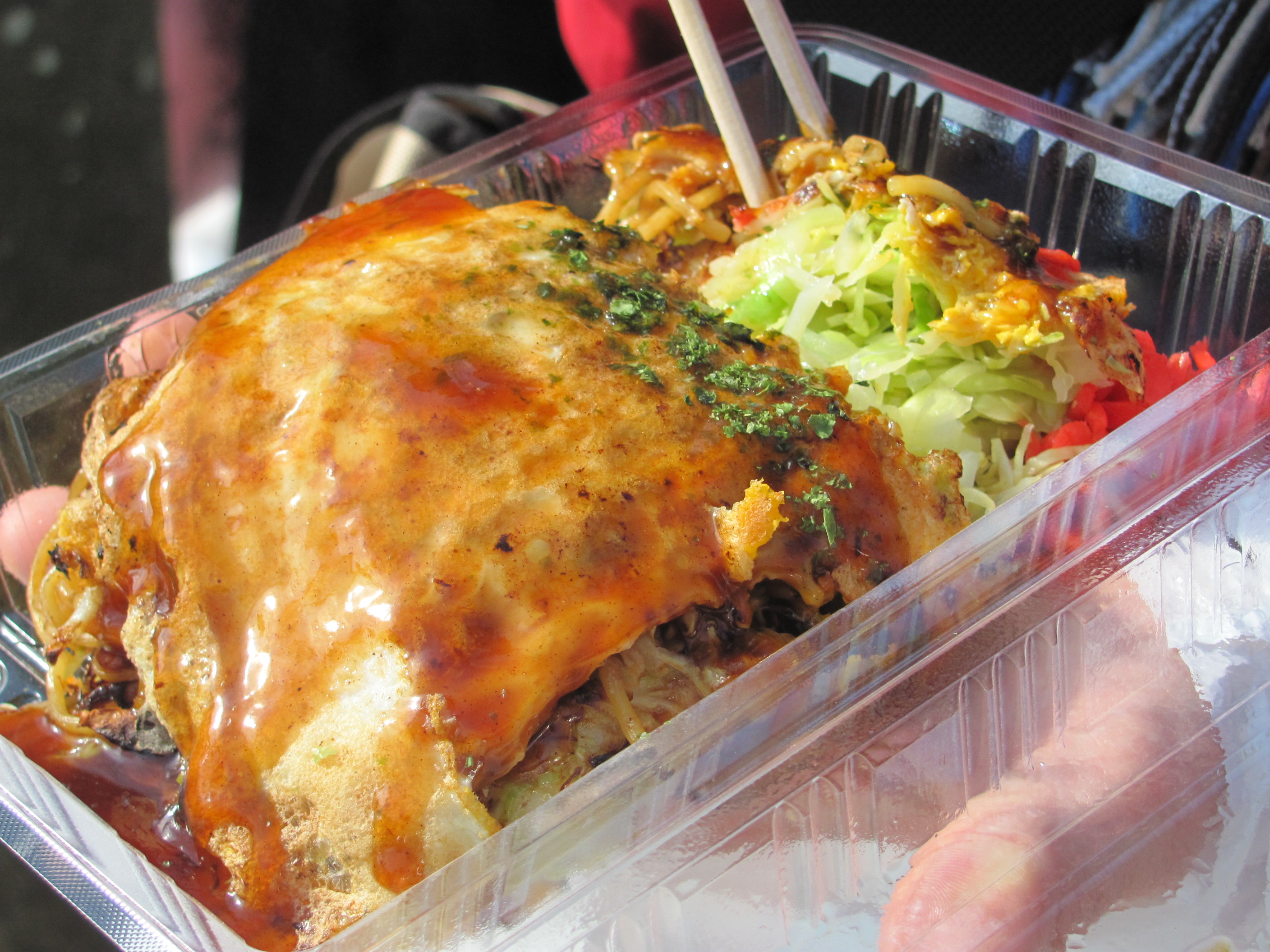 First of all, we need to re-conceptualize “street food” for Japanese culture. It’s true that walking and eating is considered rude in Japan. I was always told that the reasoning was that you can’t appreciate the food if you are eating it on the run. However, I think it’s secretly because if you live out in the country, the chances of a hawk or some other large fishing bird swooping down and stealing your ice cream cone or onigiri is fairly high. Modern city crowds don’t really lend themselves to a quick bite on the run, either, and not all of historical or contemporary Japanese food, with the notable exceptions of onigiri and oyaki, was portable in the sense of eating and walking.