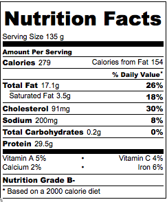 **Nutritional information for a 135 g (1/4 of recipe) serving.