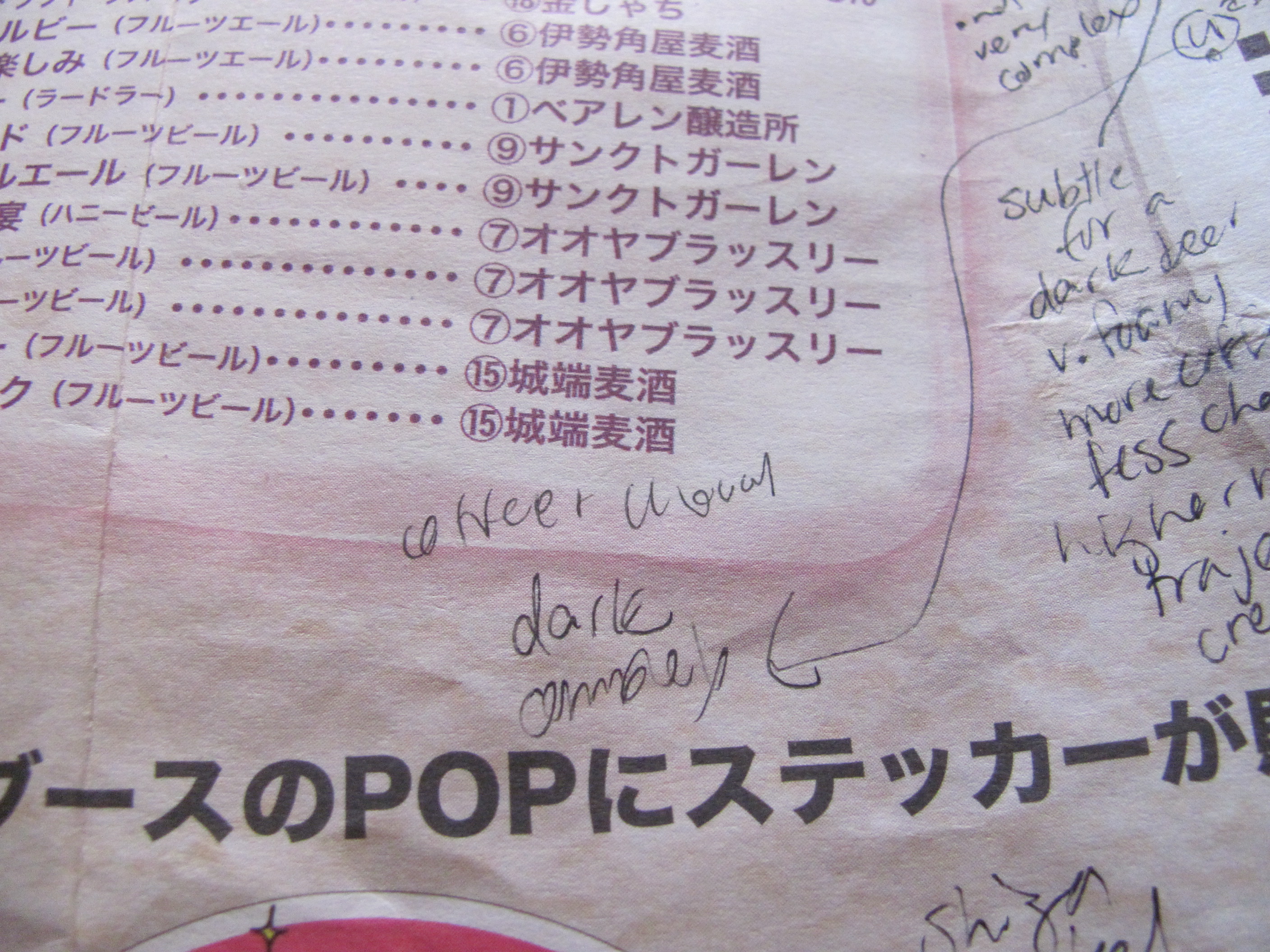 What does one drink when confronted with 20 breweries’ worth of Japan’s finest craft beer? Make a game plan. When I attended the Michigan Brewers’ Guild Summer Beer Festival, I decided to only drink cherry beers, as those are much harder to get on draft than stouts. This time, after three years of living deprived of regular access to stouts, I circled 5 stouts I’d like to try, got a pizza for lunch, and set to work drinking.