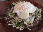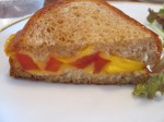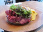 Luckily for the brunch and omelet enthusiast, there is Cafe Dumbo, one of my favorite cafes here in the city. The darling of the Kanazawa JET community, Dumbo may be the only cafe in town that serves Western-style vegetarian omelets. That’s right– no rice, no secret meat. Of the 6 or so lunches that the cafe serves, 2-3 are vegetarian: the vegetable omelet open-face sandwich, the cheese omelet open-face sandwich, and the grilled cheese (this seems to be Saturdays only). Yes, that’s right: real grilled cheese made on the same delicious crusty bread they use for the other sandwiches. It’s a small sandwich with a big green salad with green-leaf lettuce, tomatoes, and herbs, another rarity in Japan. (Not to be down on Japanized Western food, but if I never see another raw cabbage and shaved carrot salad in my life it will be too soon.)