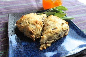 These last weeks have not been good for breakfast. Life has been rather rough, and it’s brought on a depression that leaves me weak-armed and unwilling to consume anything but smoothies and soup. But it’s autumn, and we should have nice things to eat. Scones are easy, and sage doesn’t have to be just for stuffing turkeys or making pumpkin turnovers. Try it with dried apricots and apricot jam in these simple cream scones.