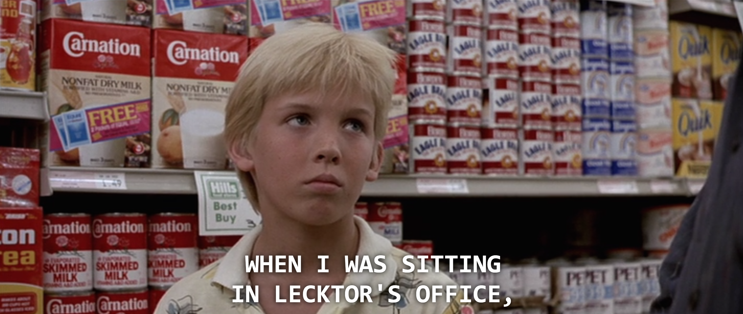 Kevin: “In the papers it said it was, this man Lecktor [sic]”?Will: “I tried to build feelings in my imagination”