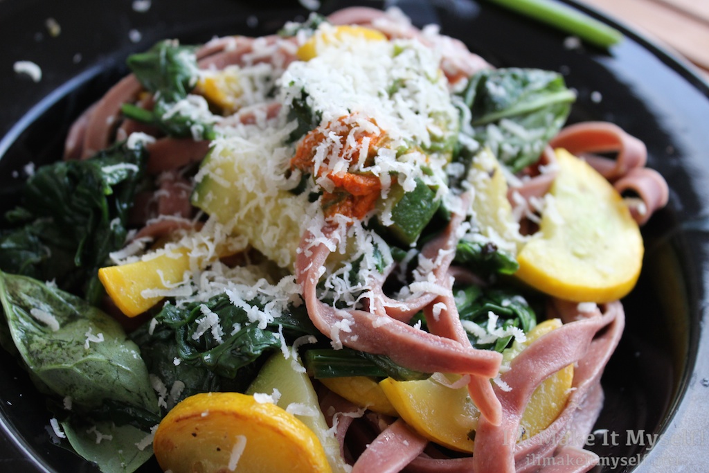 Summer is winding down, and season 3 of Hannibal is over. It was all I ever wanted* and it was beautiful. For one of our last Hannimeals, I made a dish almost entirely out of items from the farmers’ market, save the sweet basil from my fledgling balcony herb garden and lemon and cheese from the supermarket. We served it with Bainbridge Vineyards Sigerrebe.